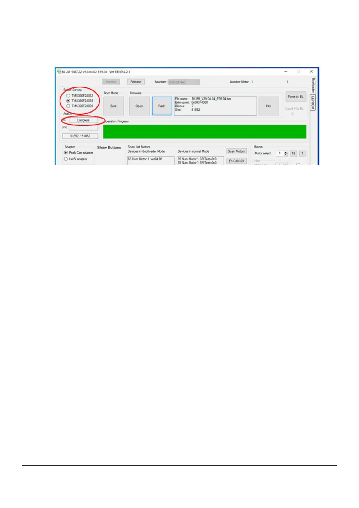 • The bootloader acknowledges with the message „Complete“.