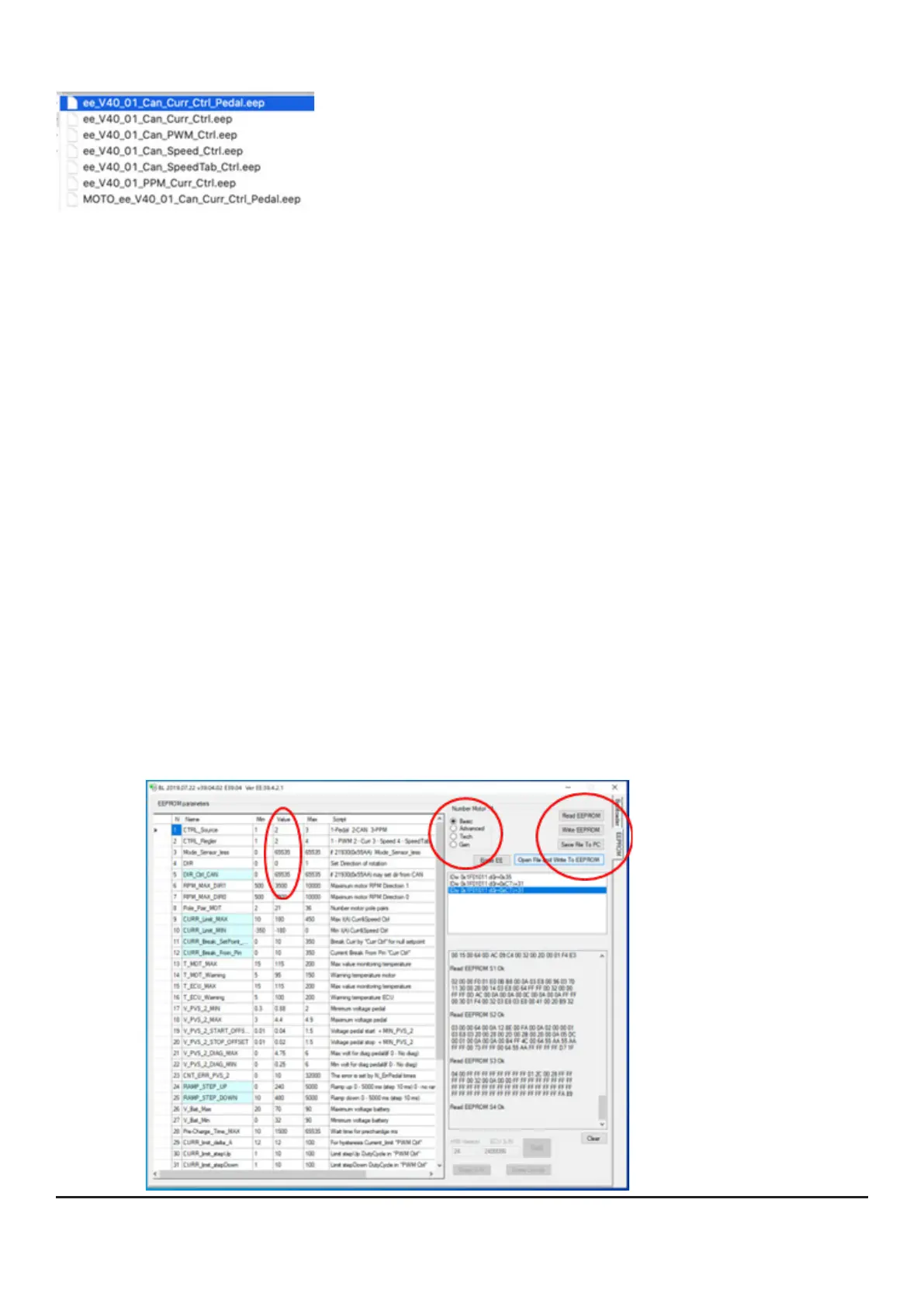• First press the button [Read EEPROM] to read out the current data of the inverter.