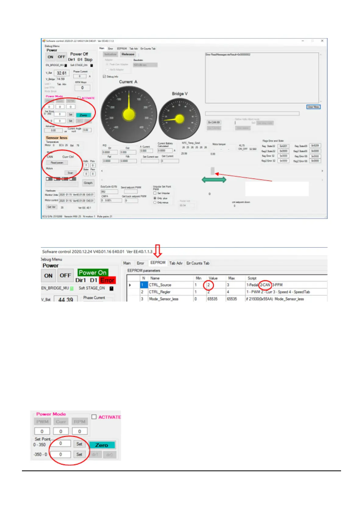 • Start with the power mode „Current Control“ ([EEPROM], line 2 -> Value: 2); this is