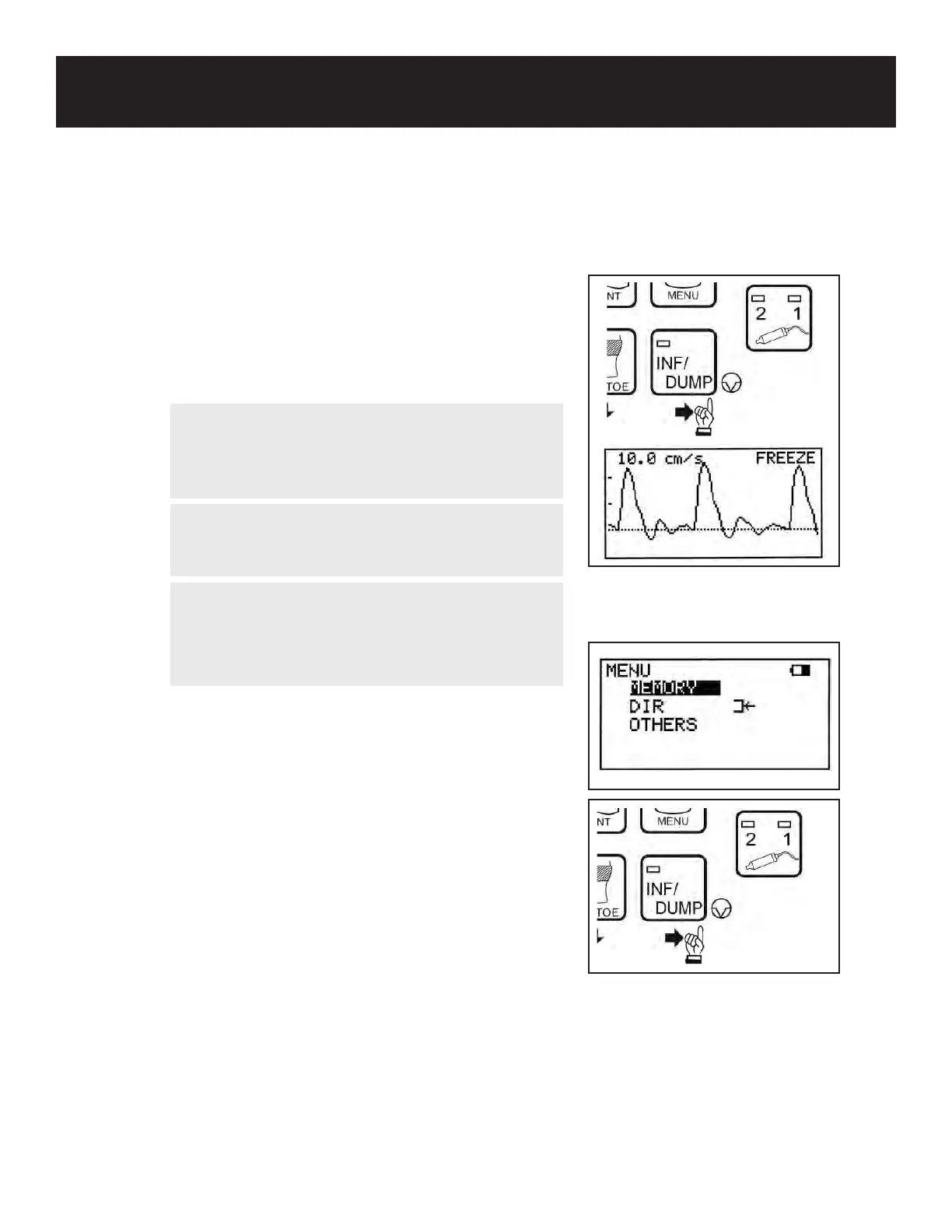 9. Press the INF/DUMP button or the probe button to