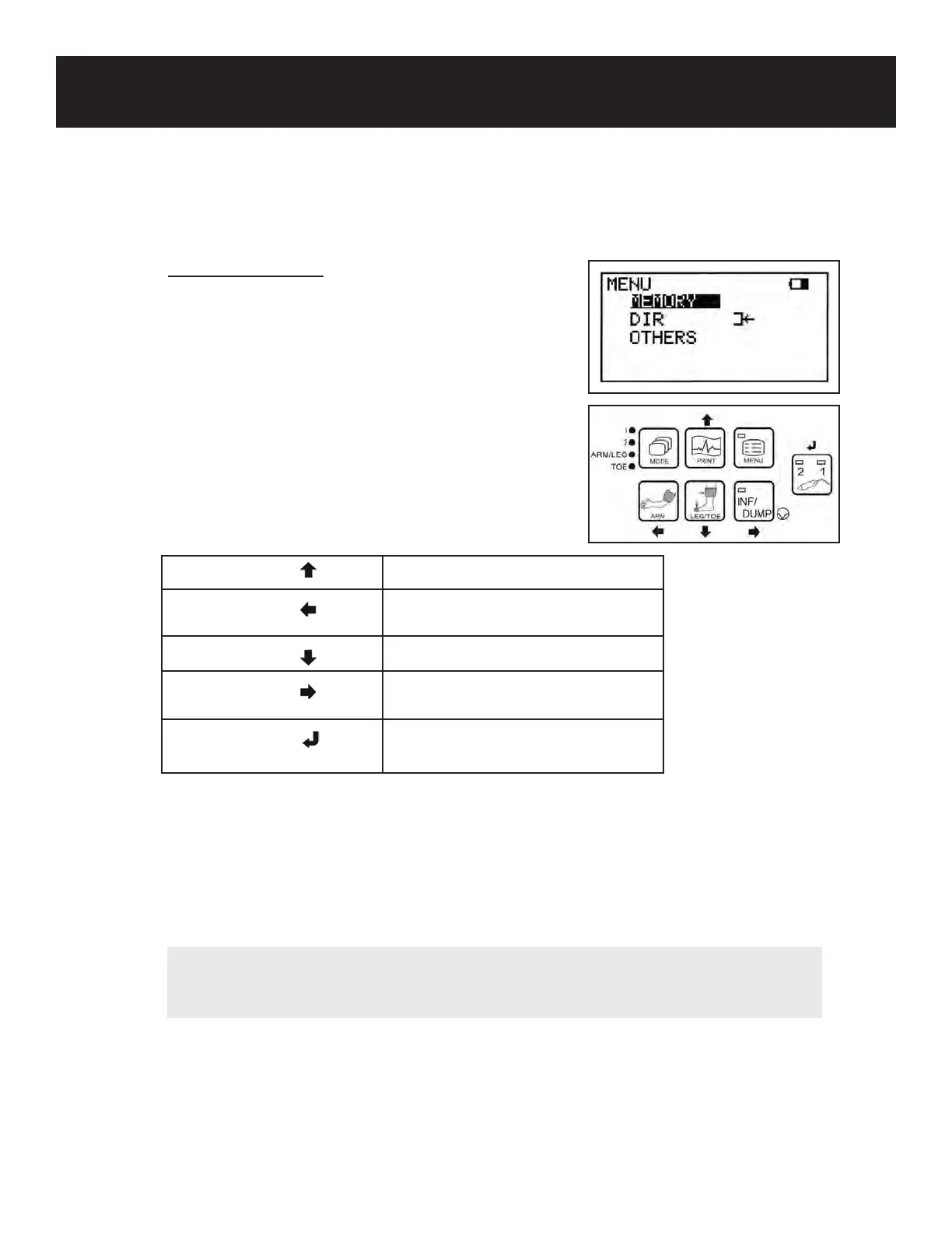 PRINT (up) or LEG/TOE (down) buttons. Press the Enter or Right button to select the