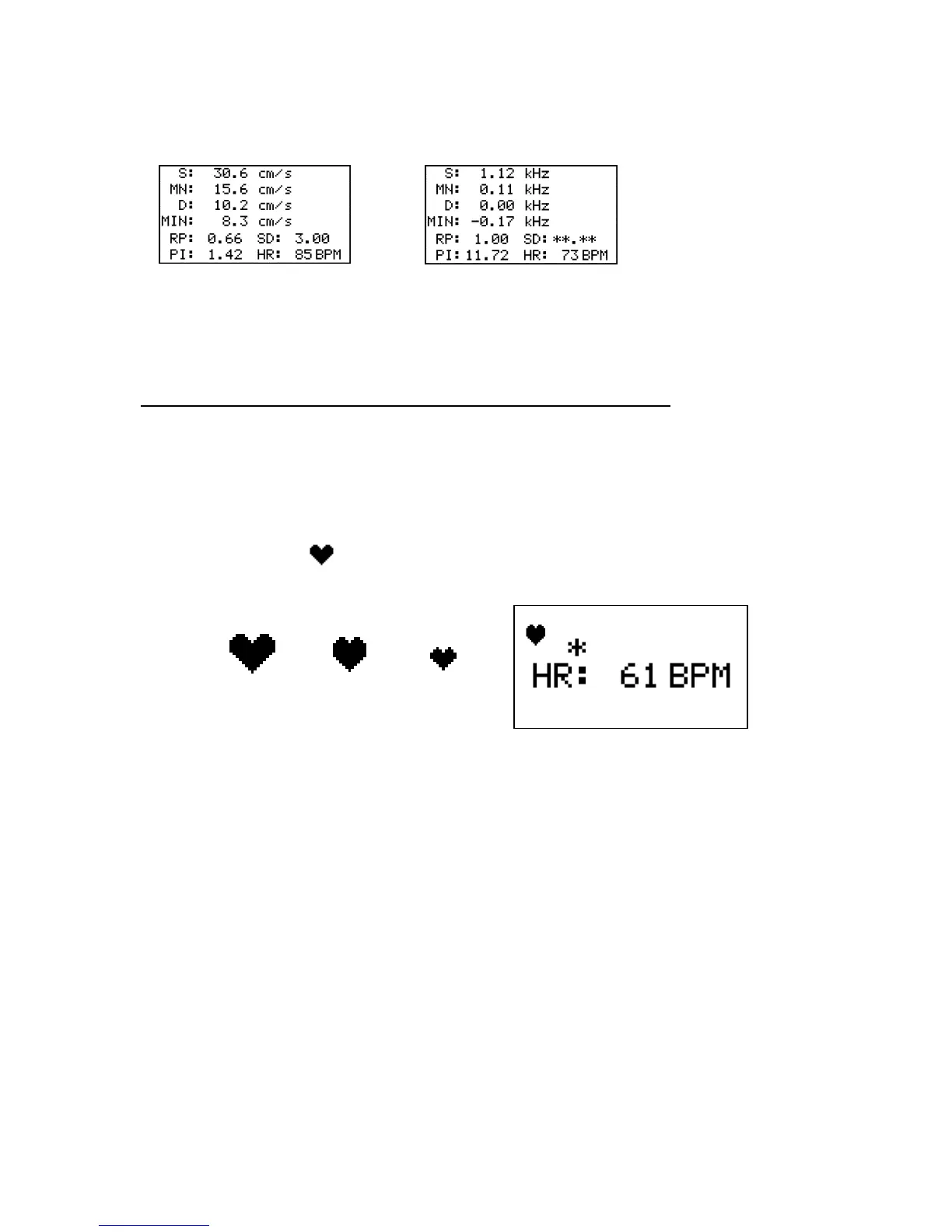 (2) The heart mark " " tracks heart beat while in measurement. The heart mark
