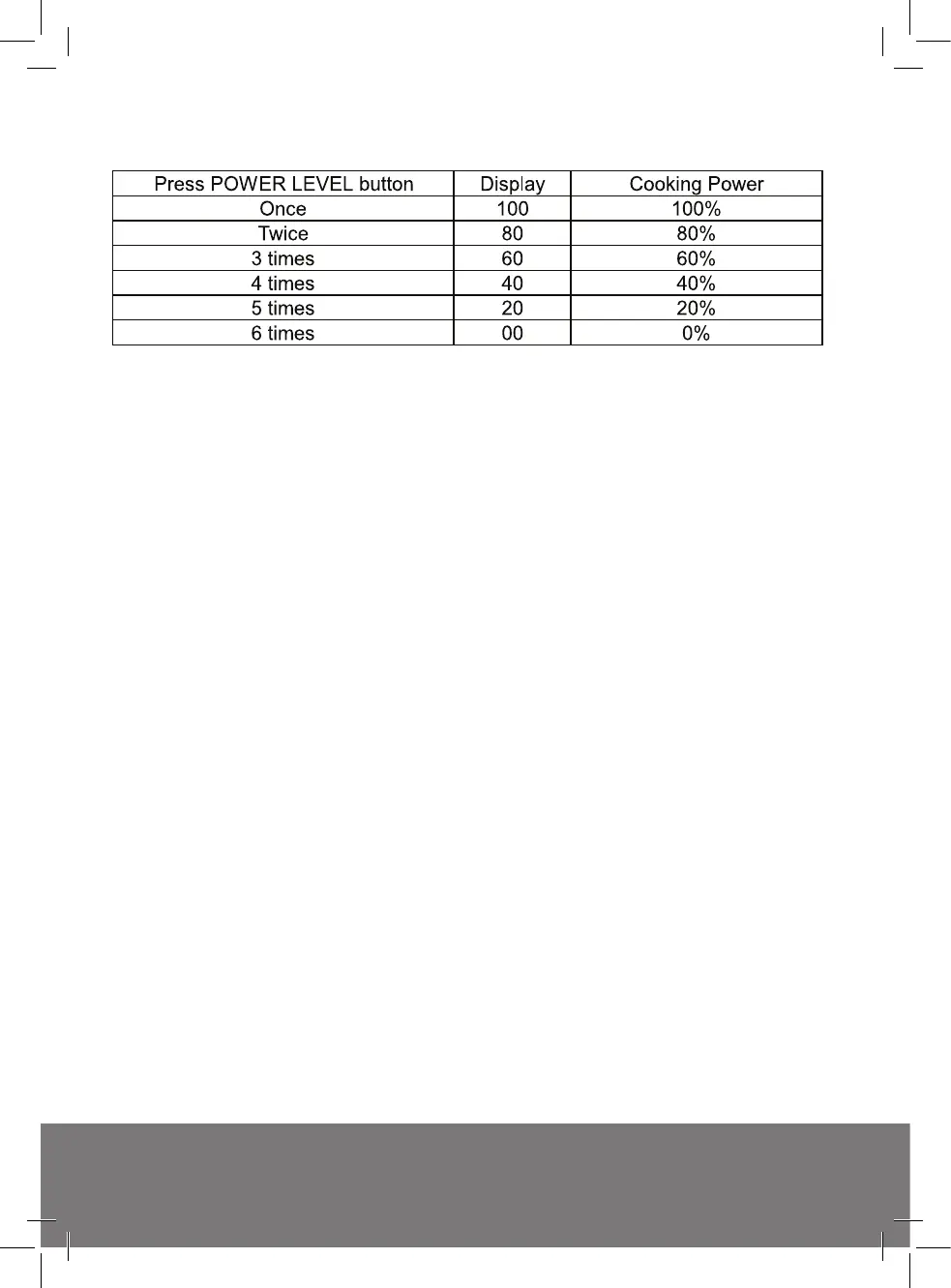 1. Press the POWER LEVEL button repeatedly to select power level.