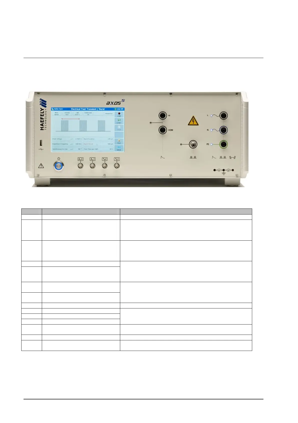 13 USB port for data transfer Save report data or test files onto USB memory stick