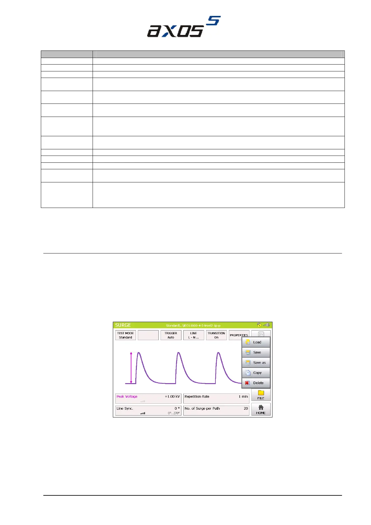 Figure 5-4 reflects the save and option of data at the “Surge” generator. These application works similar for “Burst”,
