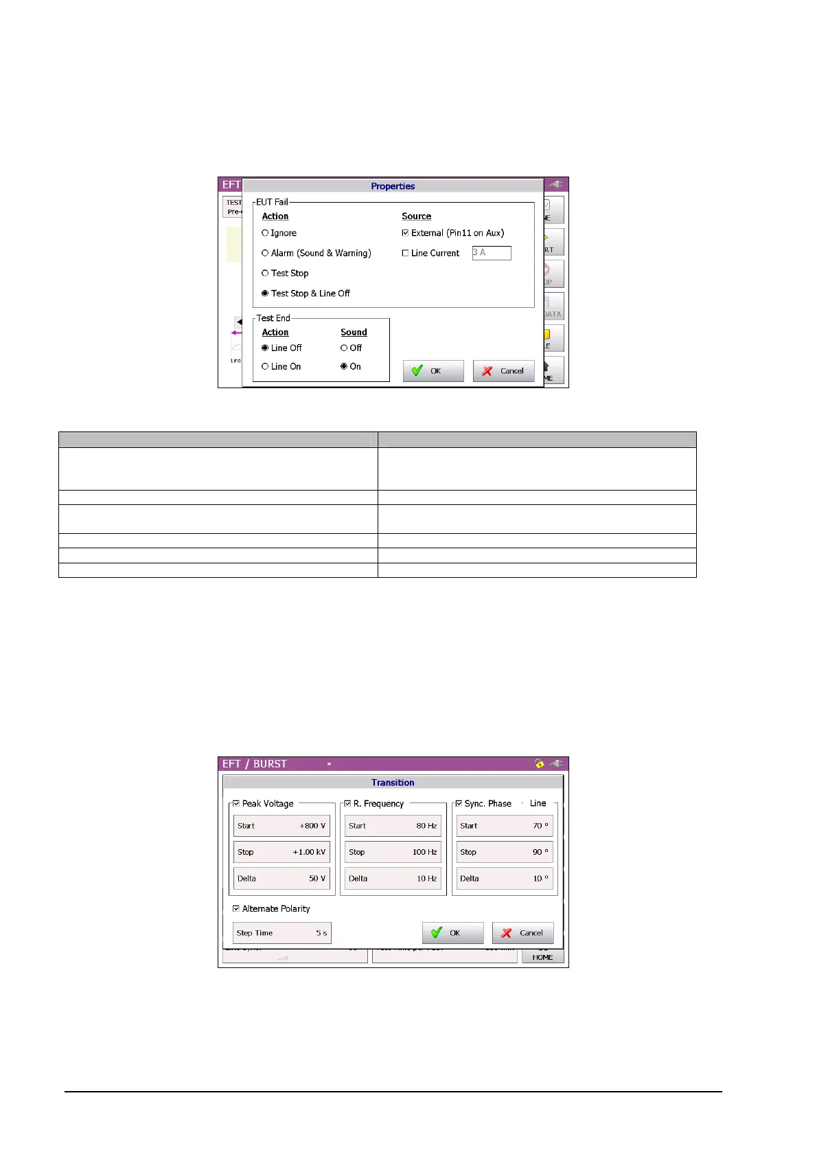 The Figure 8-6 shows the “transition” menu. It is possible to select independently “peak voltage”, “Repetition