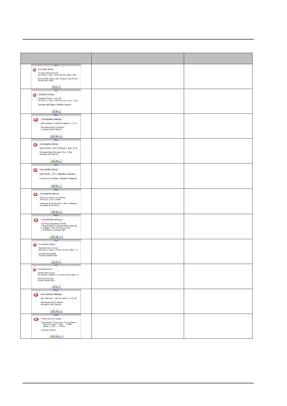burst period / burst duration incompatible