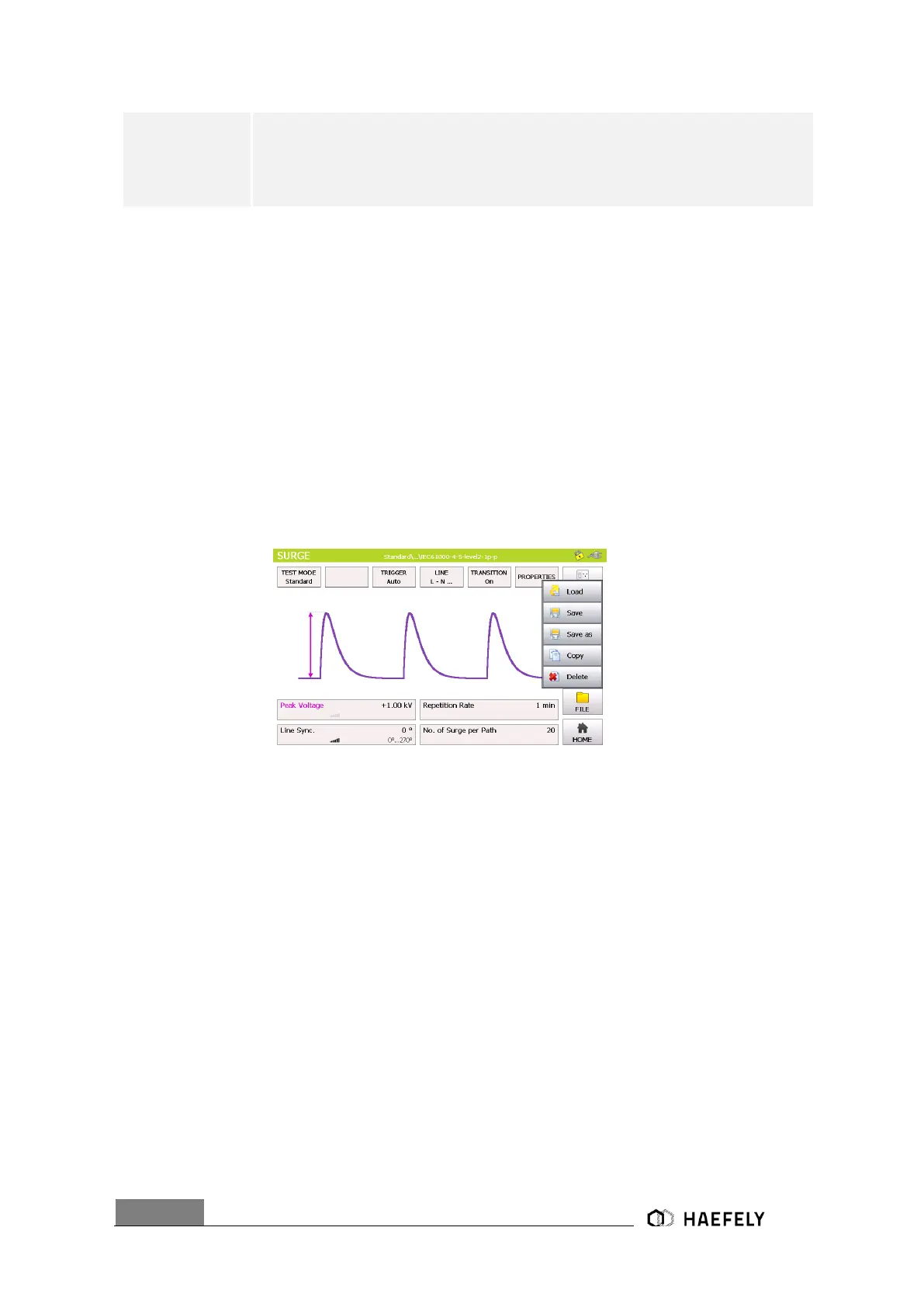 and applied through the generator to the EUT. The Figure 6-4 Save and load option of data