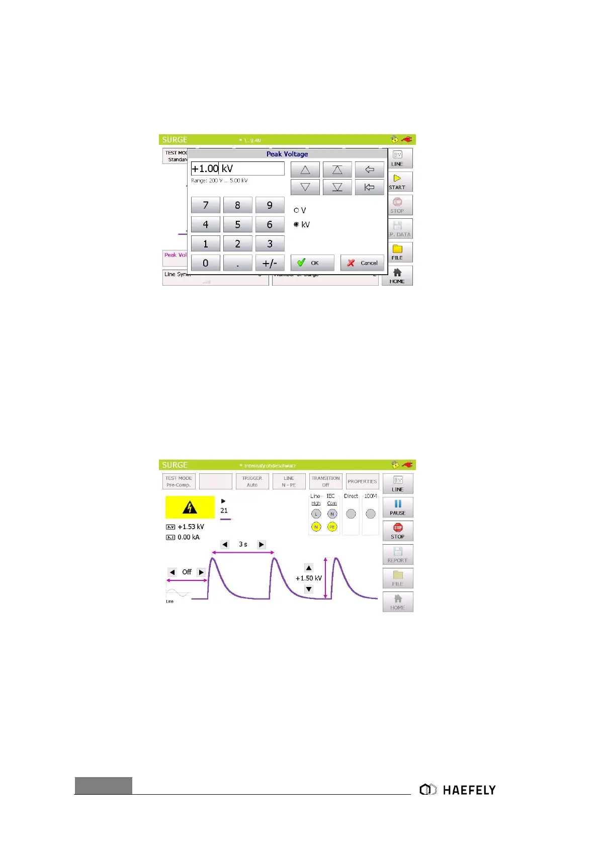 the arrow keys will bring up the numeric display shown in Figure 7-5: Surge peak voltage.