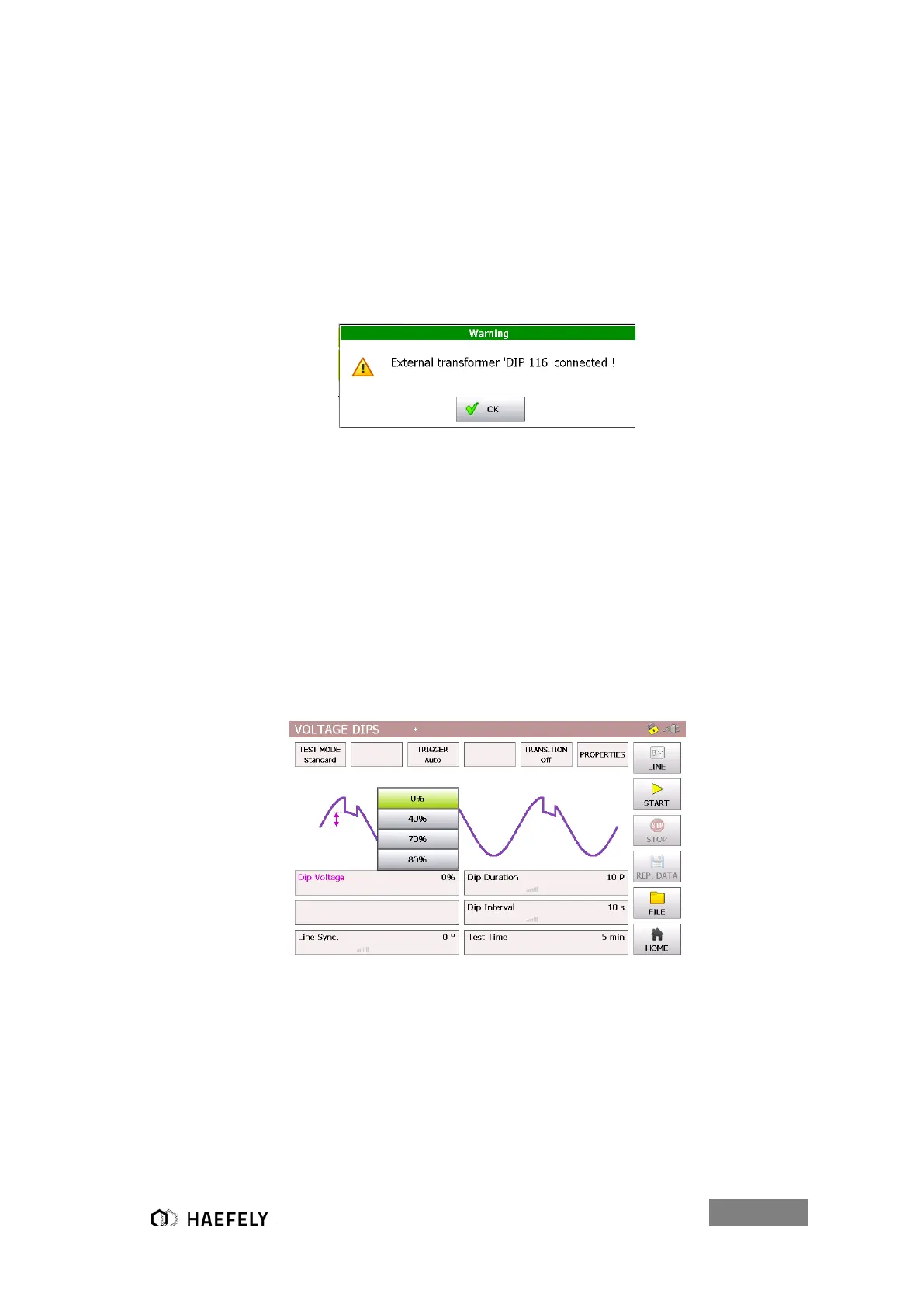 To create the Voltage dips an external transformer is necessary, because a second voltage level