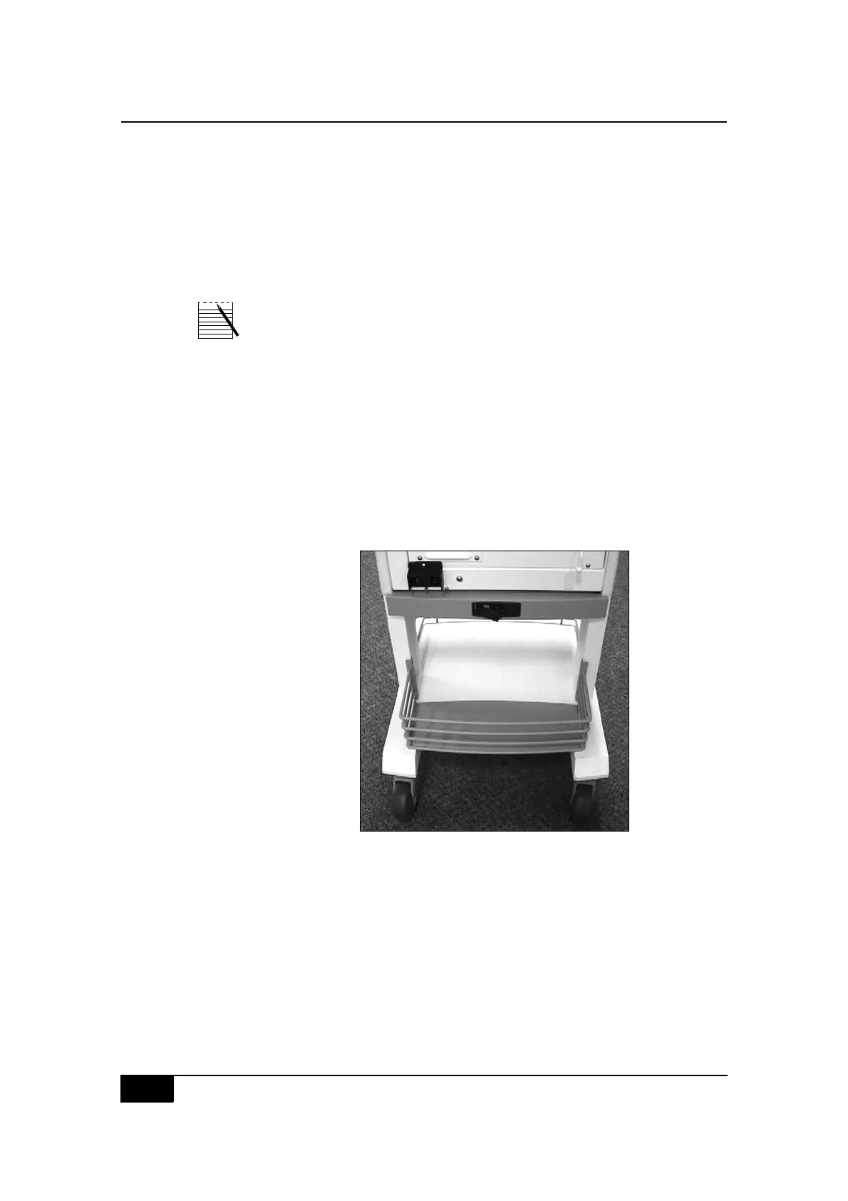 casters may be locked to secure the CS5+ cart in position. The device can be