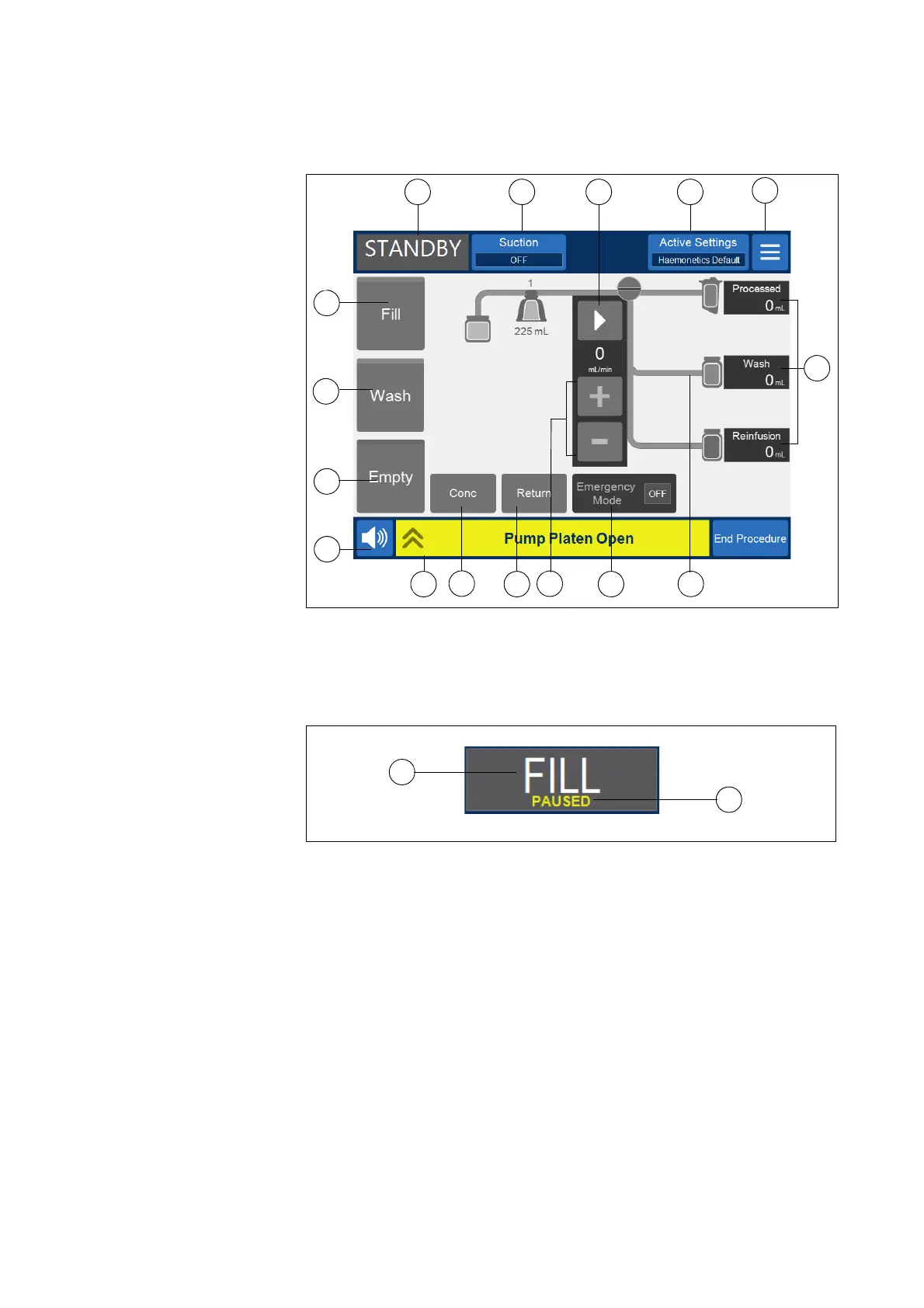 Examples: Fill, Conc, Wash, Empty, Return, Standby.