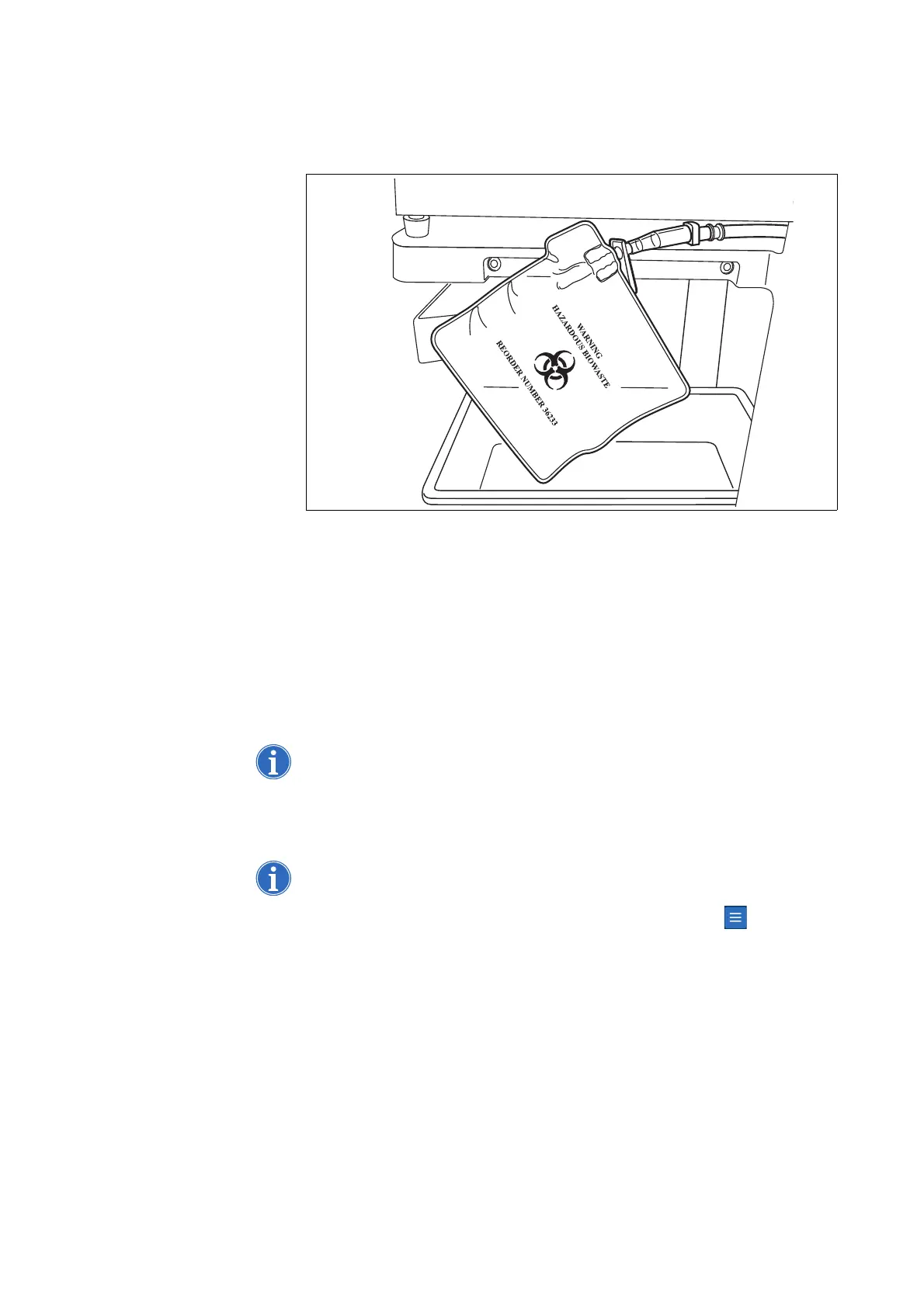 Figure 34, Allowing the biohazard waste bag to hang out of the tray