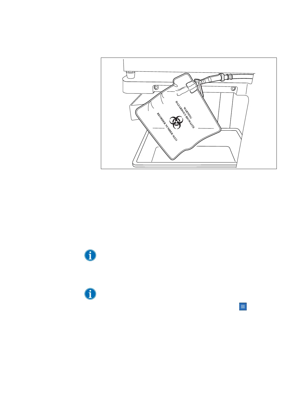 Figure 34, Allowing the biohazard waste bag to hang out of the tray