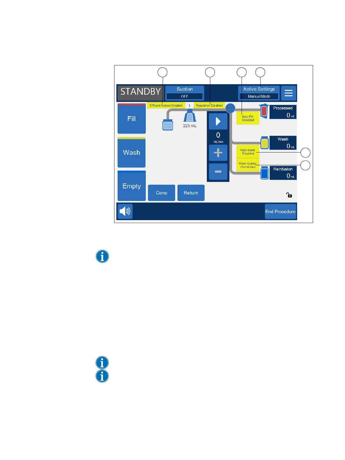 1. After starting a procedure using a settings group that has Manual Mode