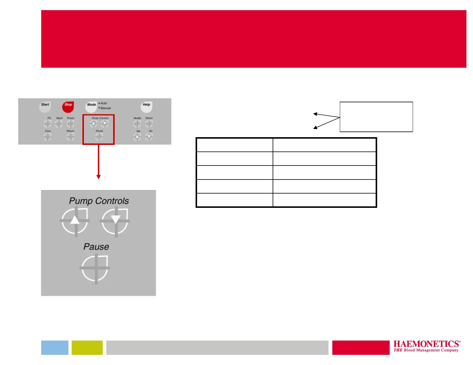 Haemonetics Cell Saver - Cell Saver Manual Control Panel: Pump and Pause; Pump Controls and Pause Function