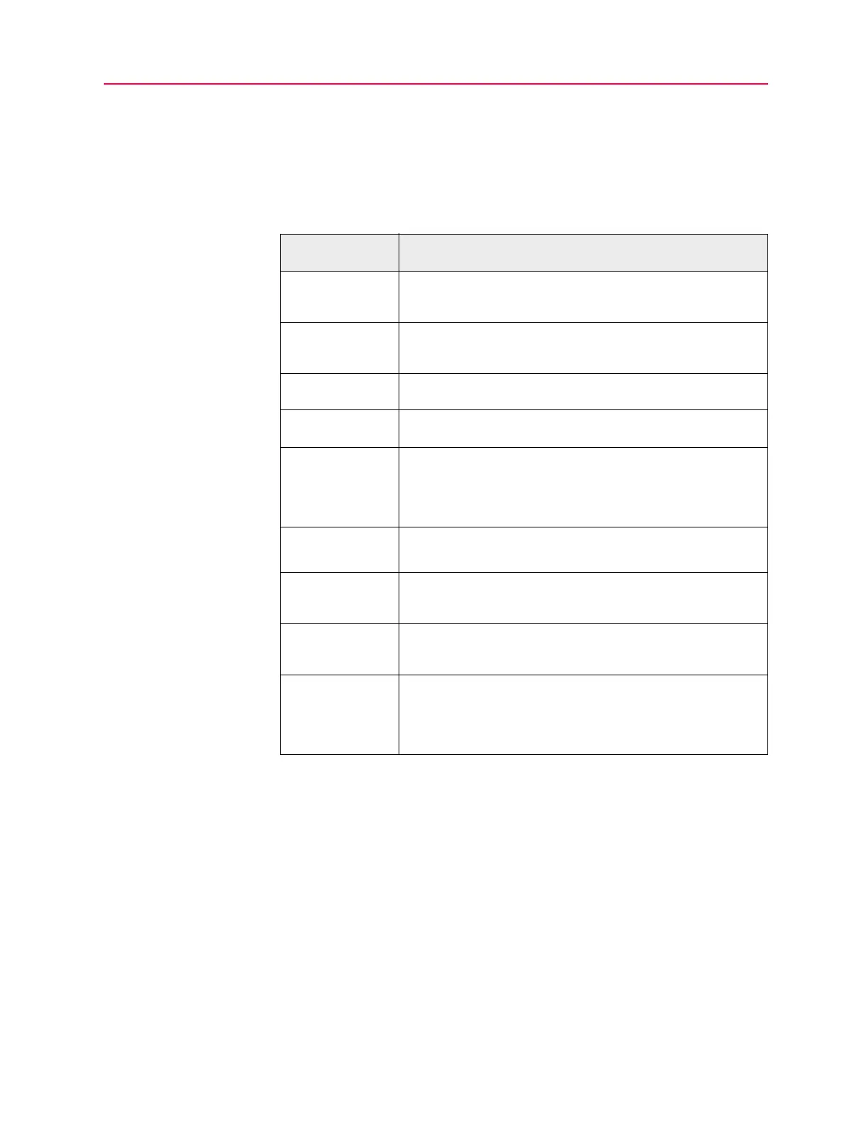 The following table lists each parameter and its definition.