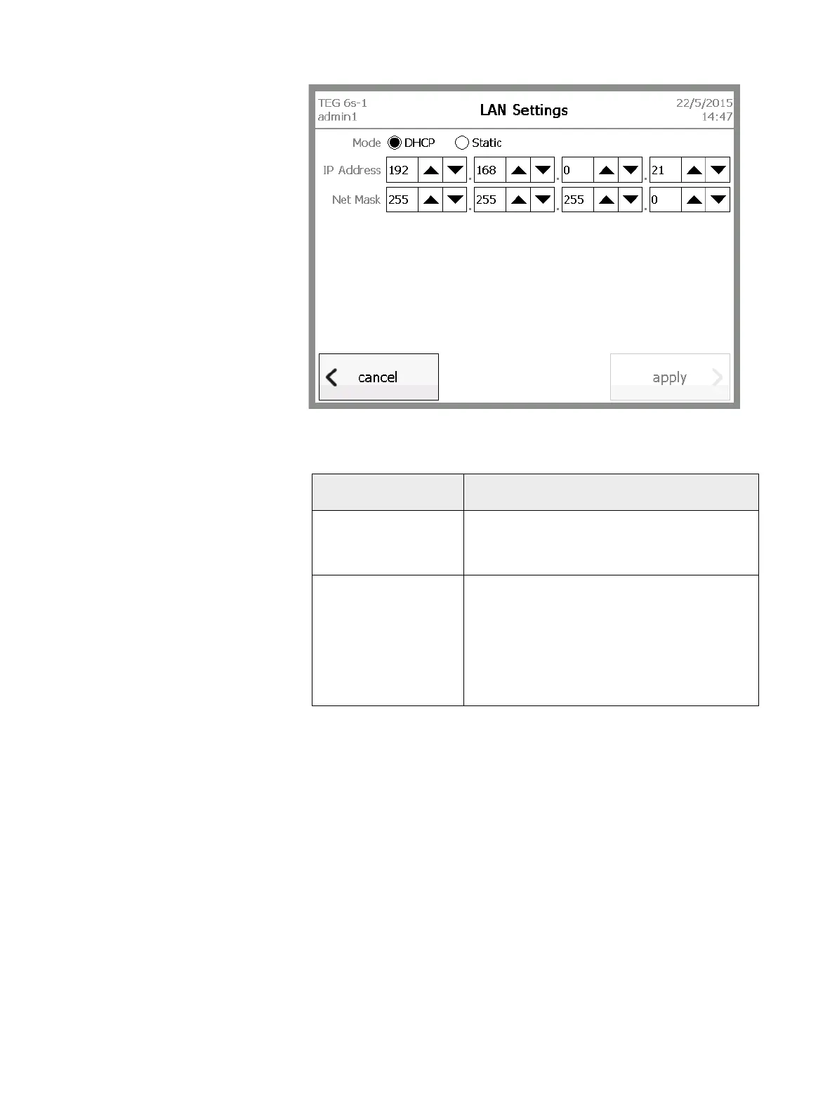 Figure 4-16, LAN Settings screen