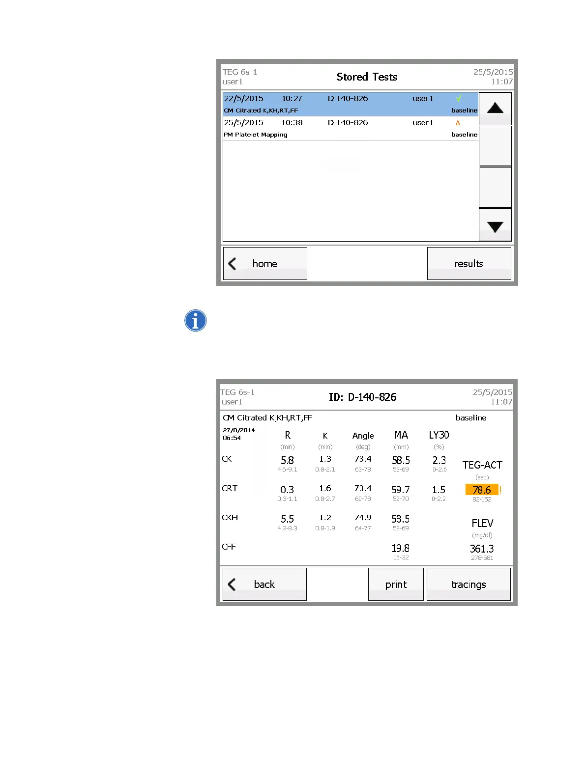 Figure 5-16, Stored Tests screen