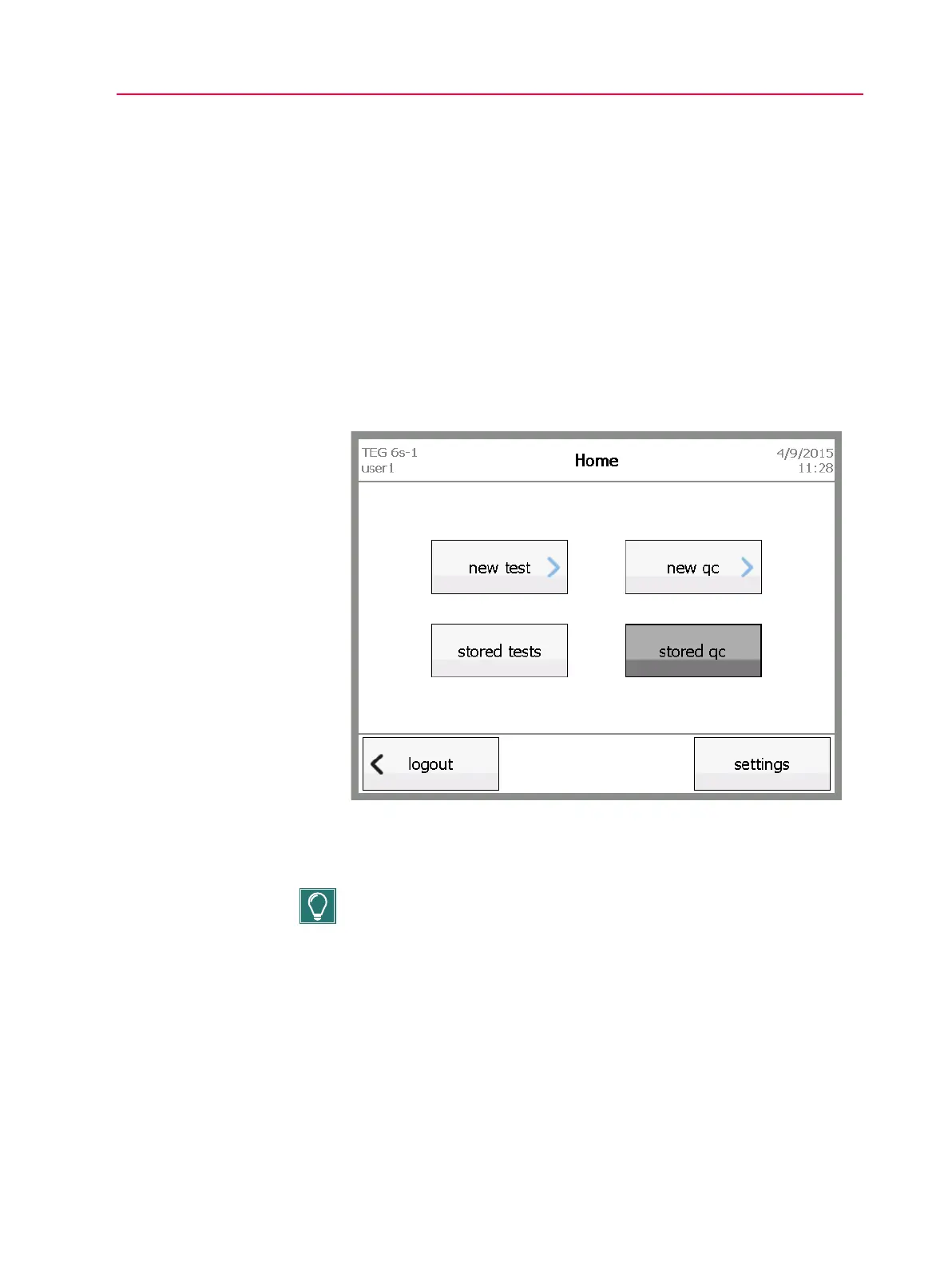 Figure 6-10, Home screen - touch stored qc
