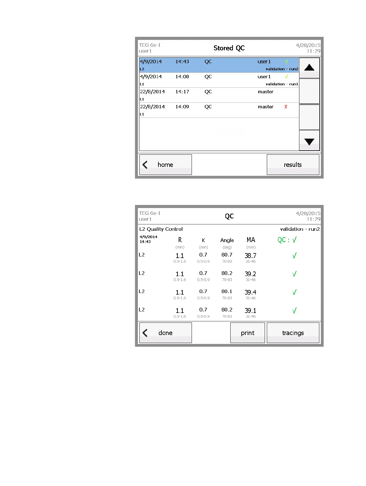 Figure 6-11, Stored QC screen