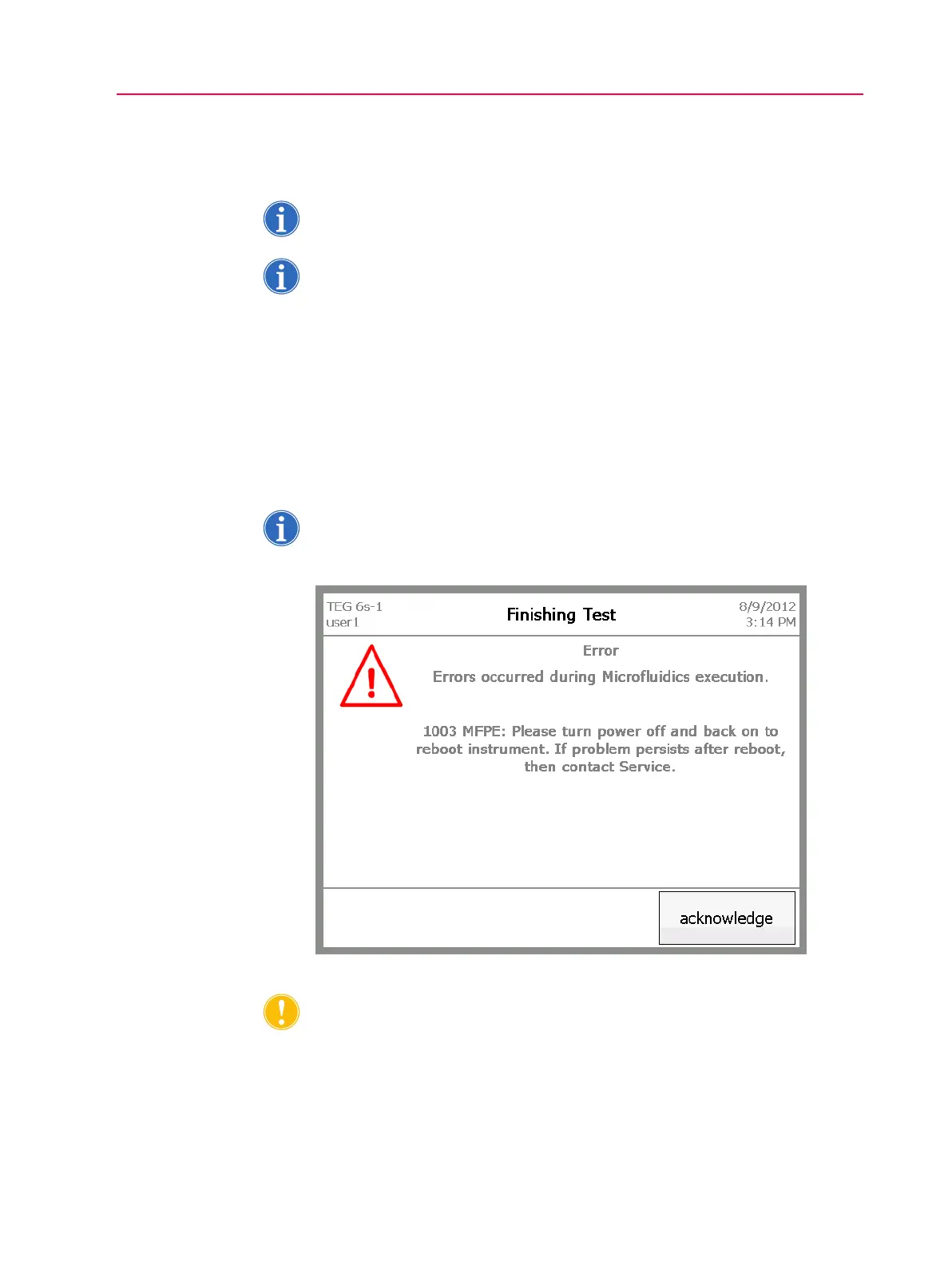 Error messages When an error occurs, the TEG analyzer displays a description of the error and