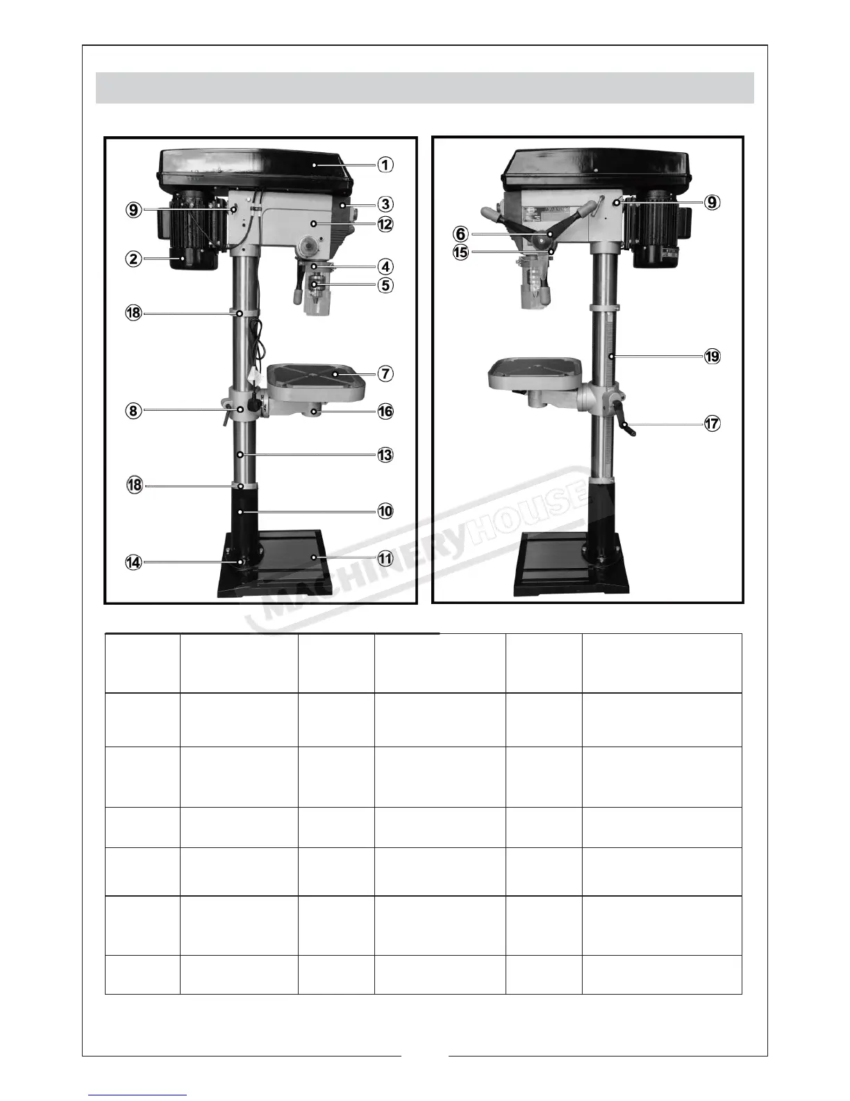 Hafco bd-325 - Product Overview: Pedestal Drill; Pedestal Drill Component Identification