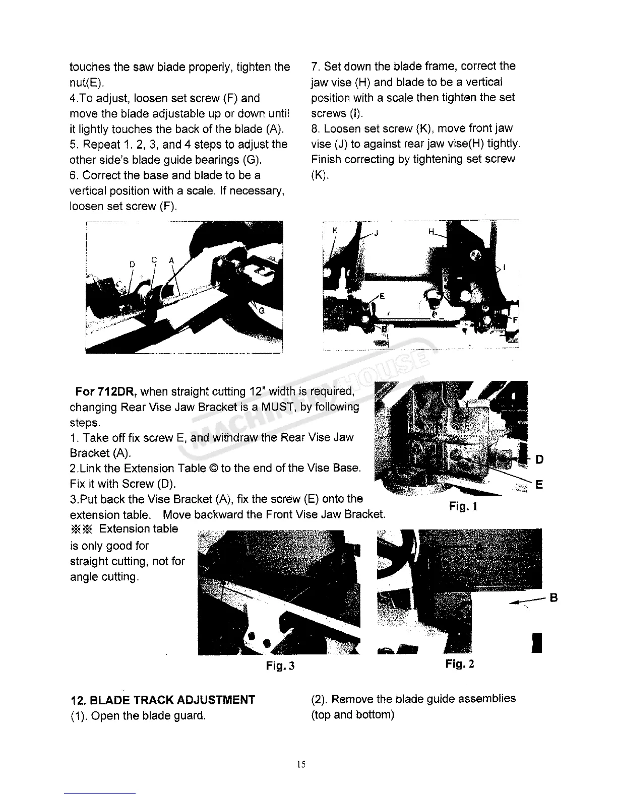 Hafco BS-7DS - BLADE TRACK ADJUSTMENT