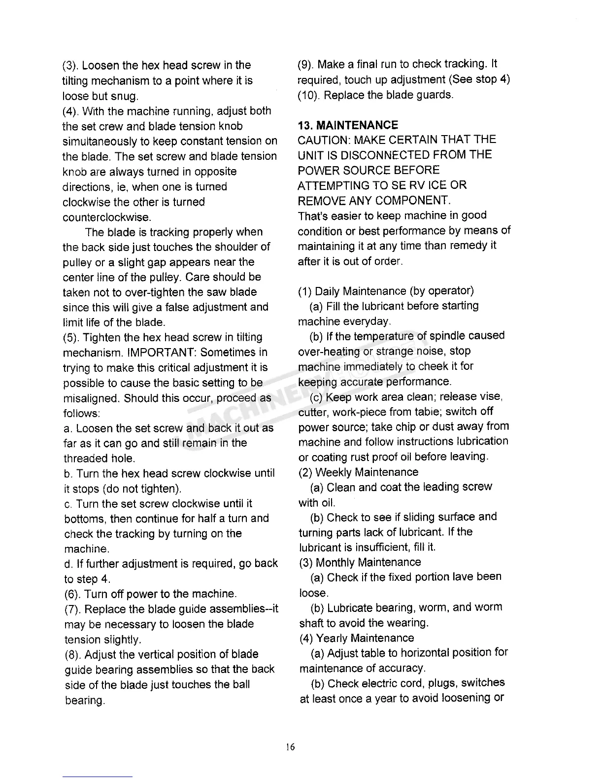 Hafco BS-7DS - MAINTENANCE SCHEDULE; SCHEDULED MAINTENANCE TASKS