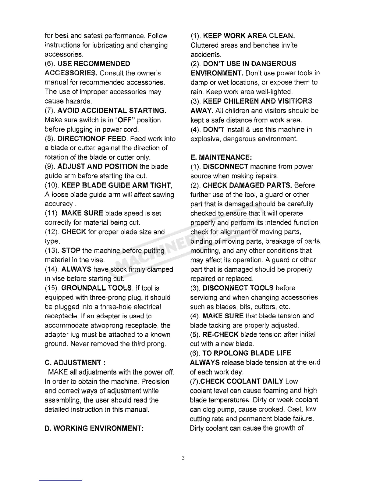 Hafco BS-7DS - E. MAINTENANCE INSTRUCTIONS