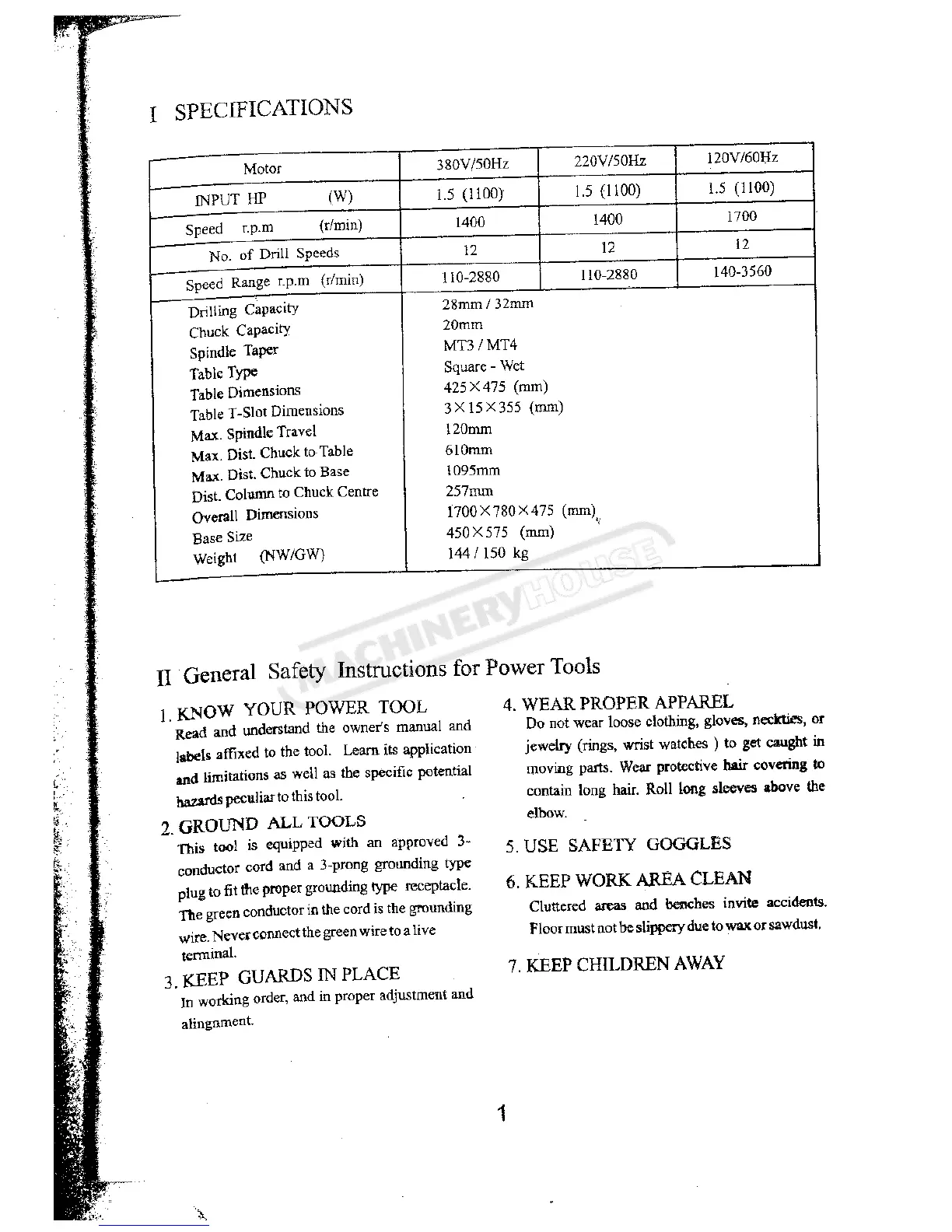 Hafco PD-26 - Specifications; General Safety Instructions; Know Your Power Tool; Ground All Tools