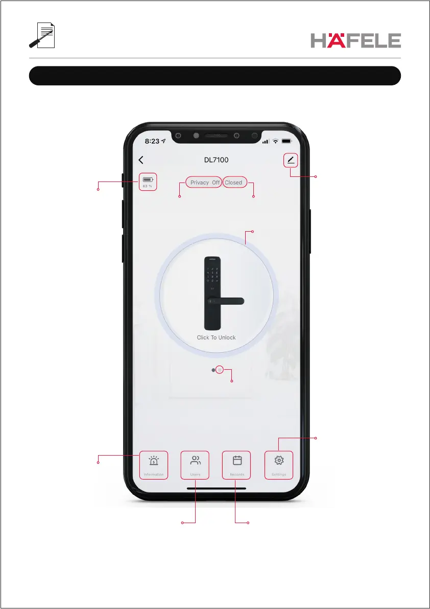 Häfele 7100 - Basic Lock Functions; Lock Interface Overview; Edit Lock Name; Remote Door Opening