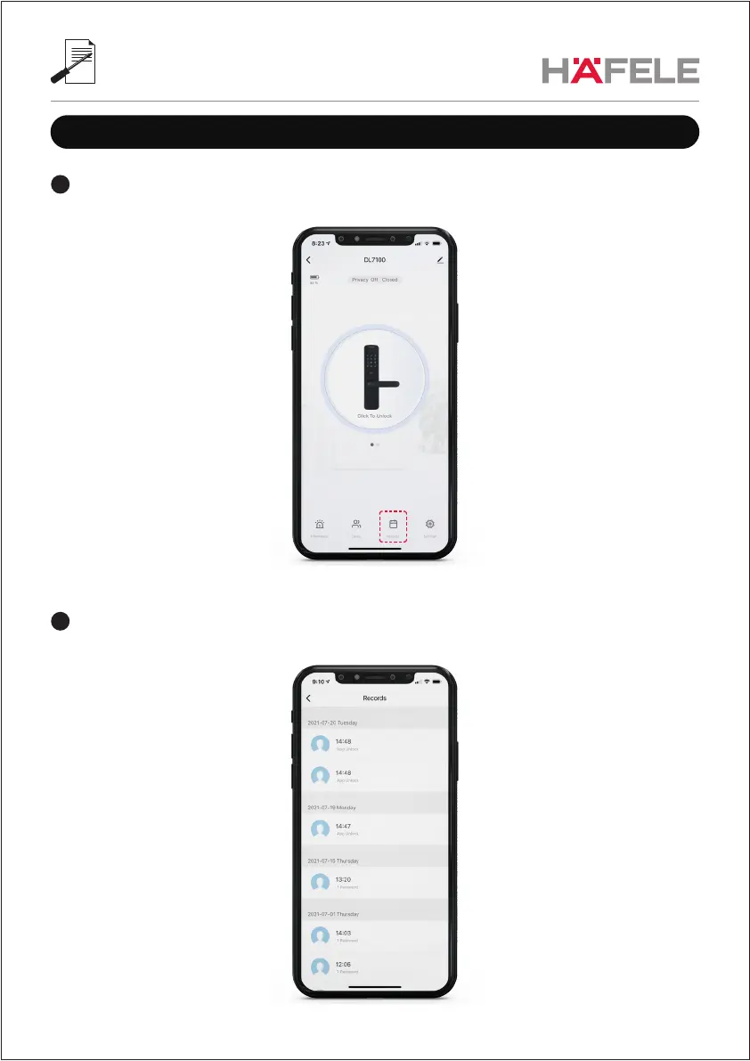 Häfele 7100 - View Unlock Records; Access Records Section; Review Usage History