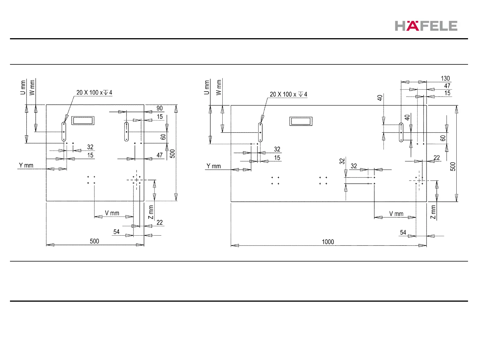 U: Der Abstand ist abhängig von der Fräsung im Rahmen. W: Position sollte über Auszugsschiene liegen.