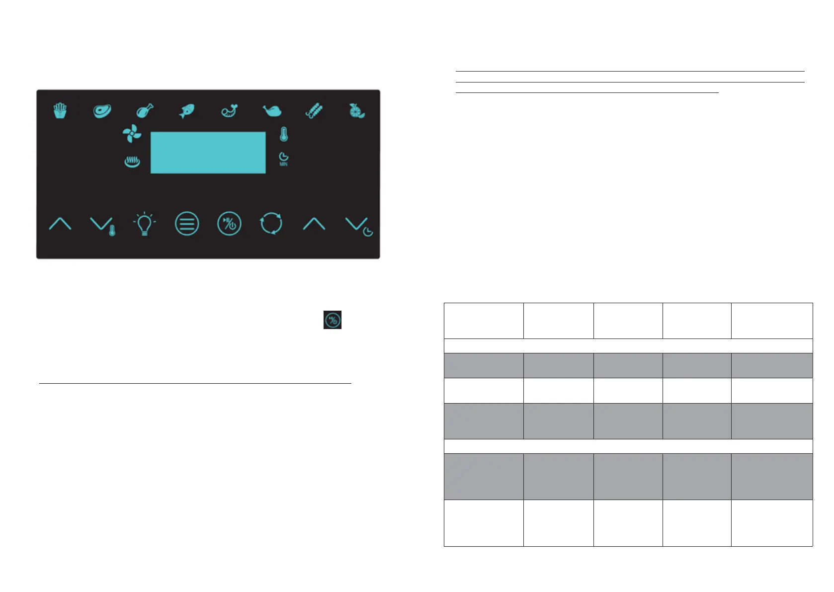 Note: Trong quá trình chiên bằng khí nóng, đèn nướng sẽ bật tắt tùy lúc. Đèn bật tắt tương ứng với