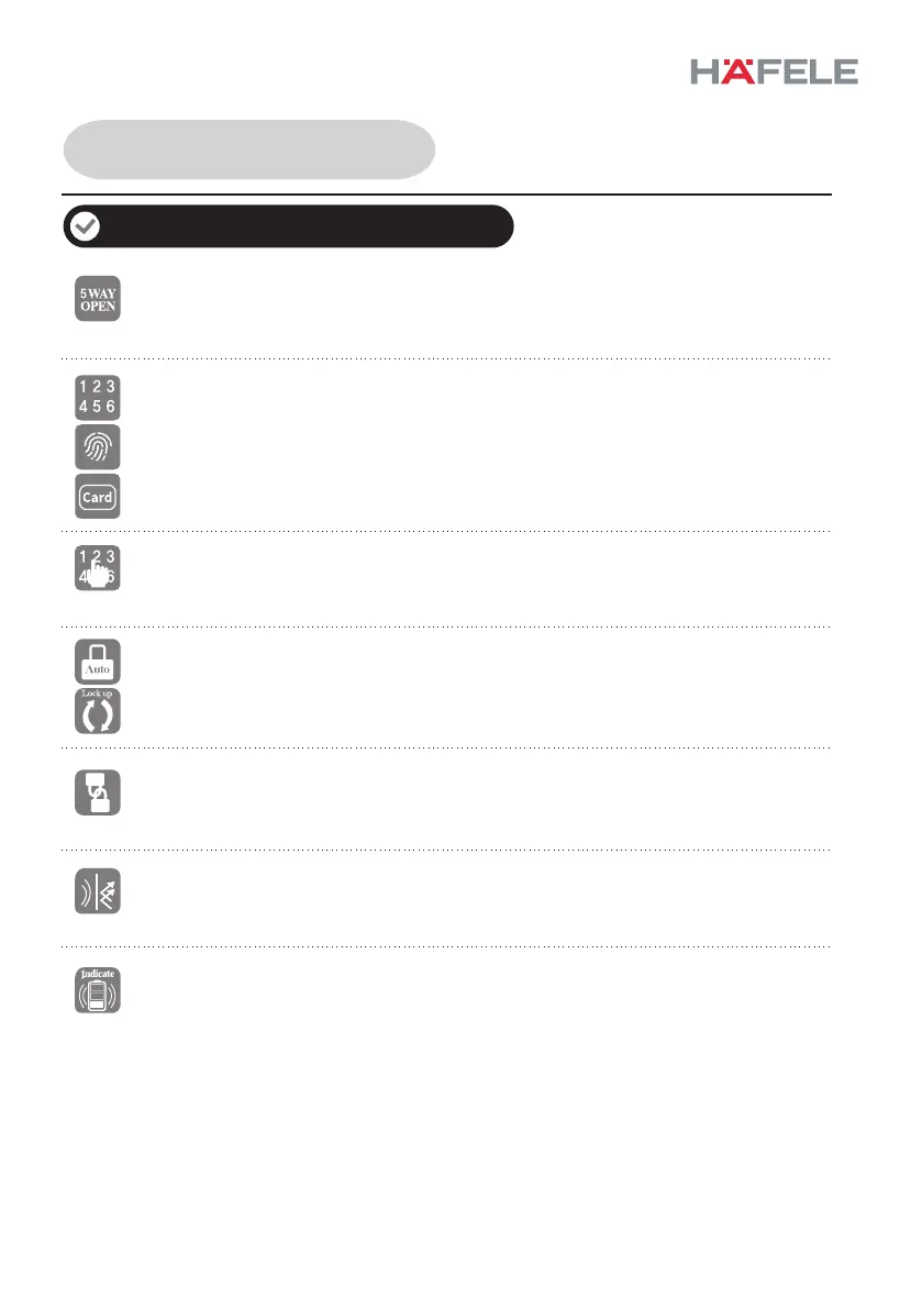 Five electronic locking modes: Fingerprint, PIN code, Key card, Zigbee and emergency key.
