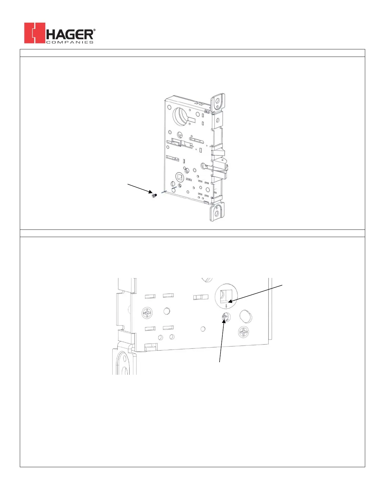 Skip this step for NL and DT functions. There is a catch screw on each side of the lock body. For BE and CE functions a catch screw