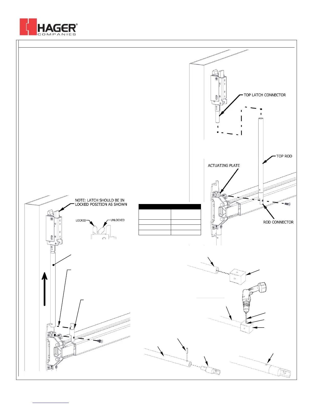 STEP 7: Be sure the top latch is in the locked position. Thread top rod half-