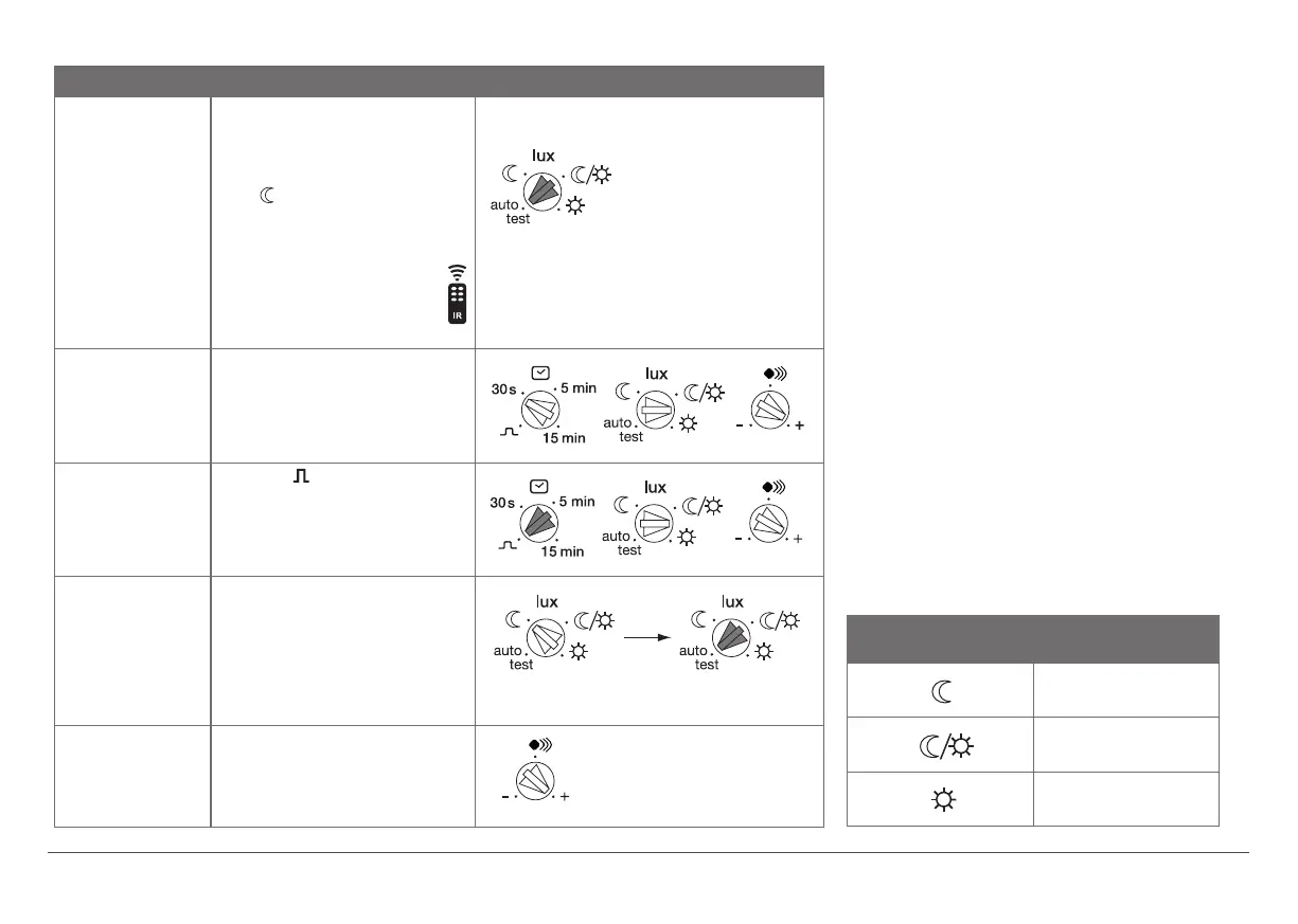 Θέση του ροοστάτη Τιμές σε lux