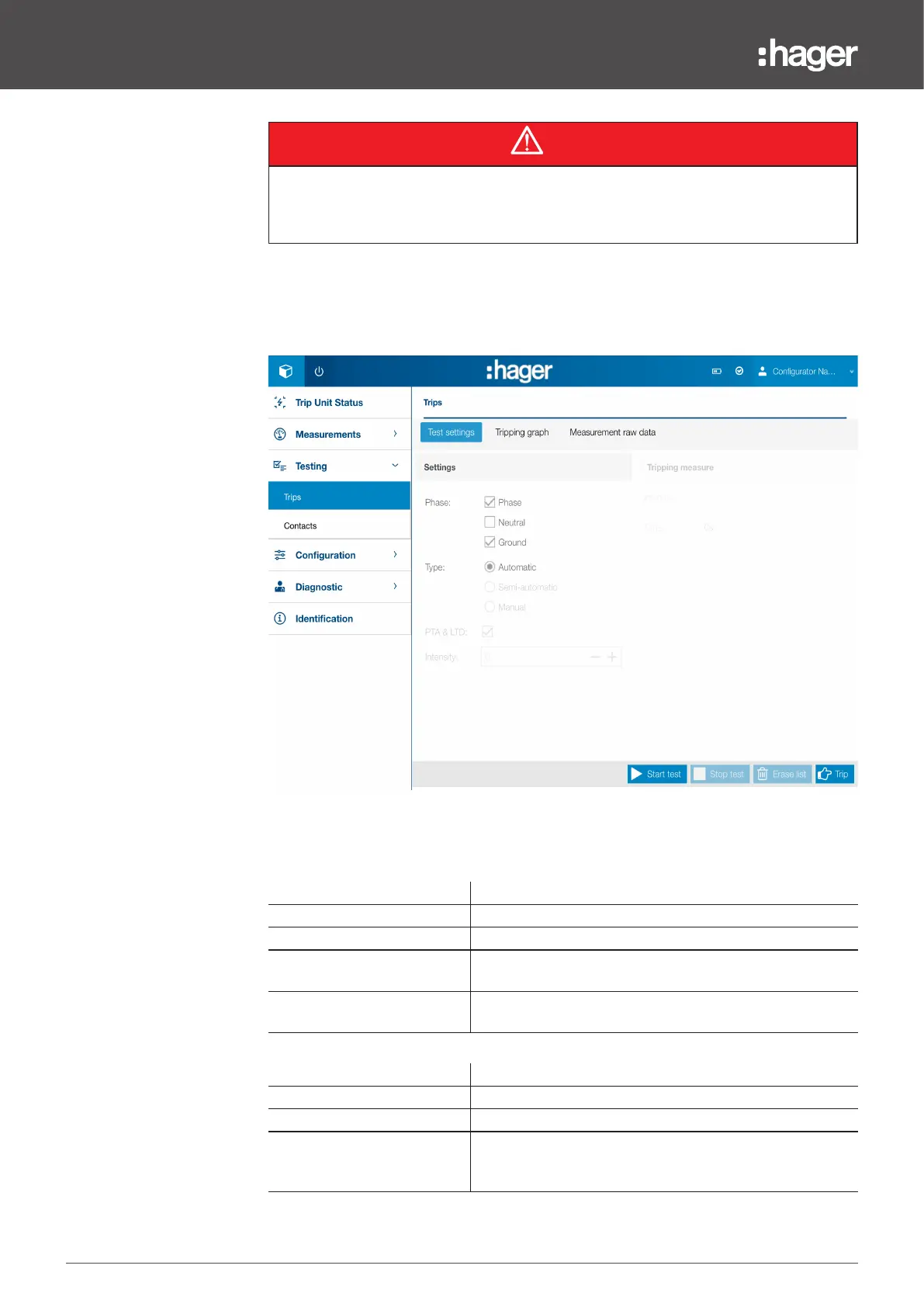 Trip curve test via HTP610H