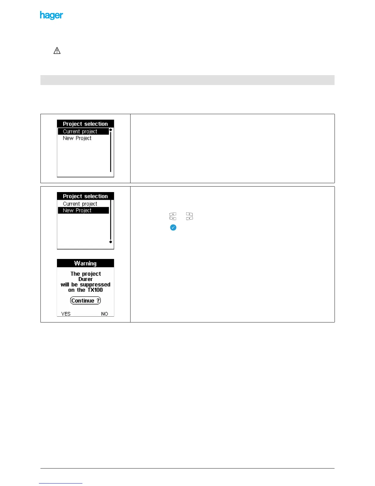 A Warning screen allows authorising or not the deletion of the current project possibly