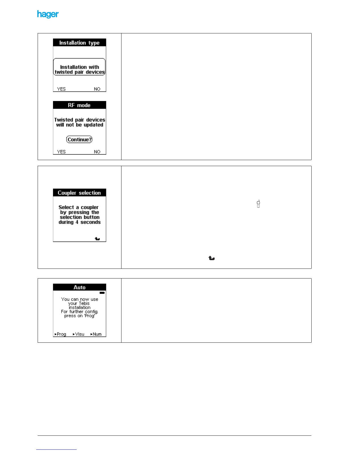 • Press the NO screen key if the installation is entirely a RF one.