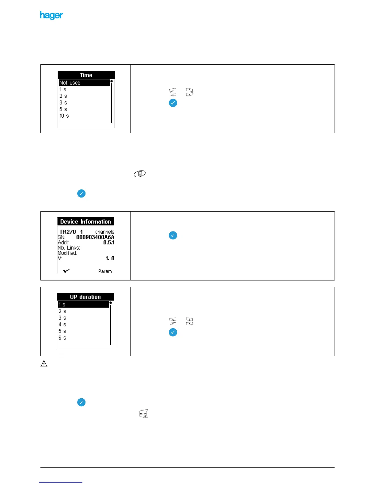 The change is shown in the screen Menu / Device management / Device information: the symbol "!" is displayed in front of the