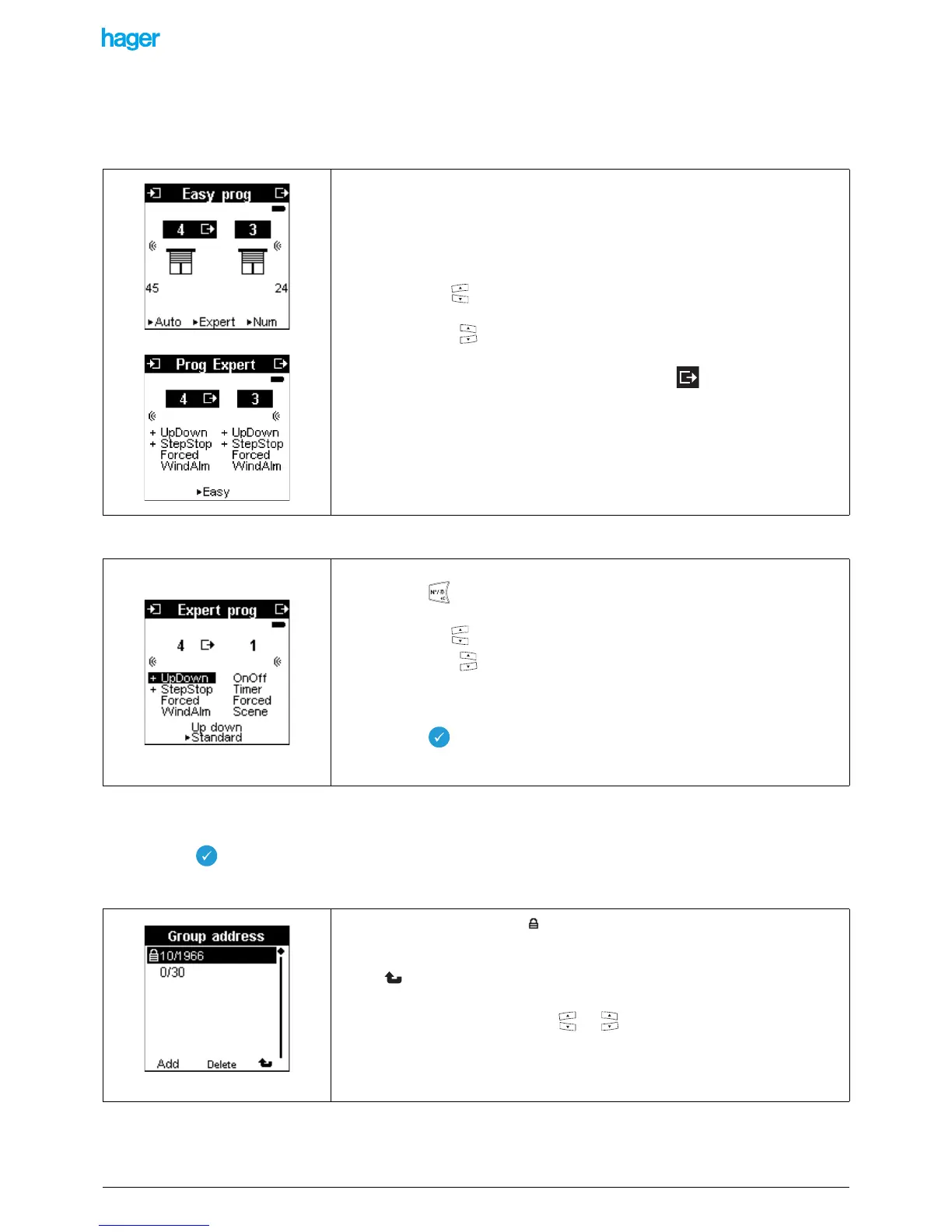 • Press the Del screen key to delete a group address (not displayed if the address is