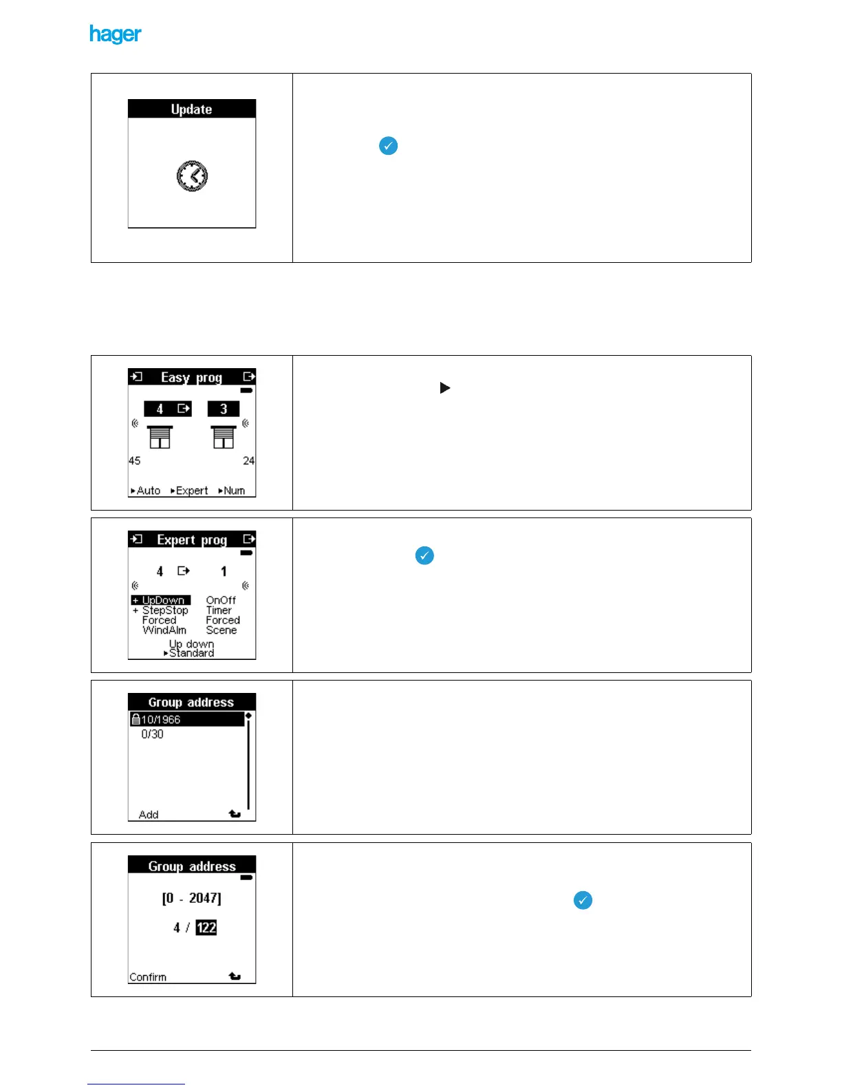 • Download the address with a long key press on .
