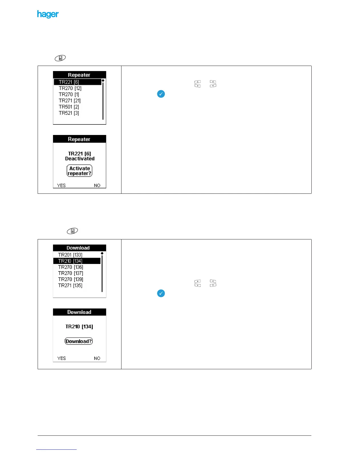 • Press the YES or NO screen key to activate or deactivate the repeater function.