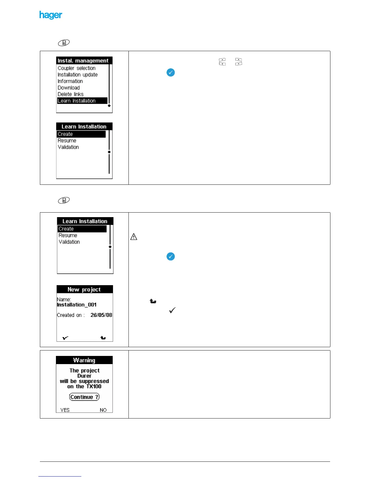 Screen / Menu / Instal. Management / Learn Installation: