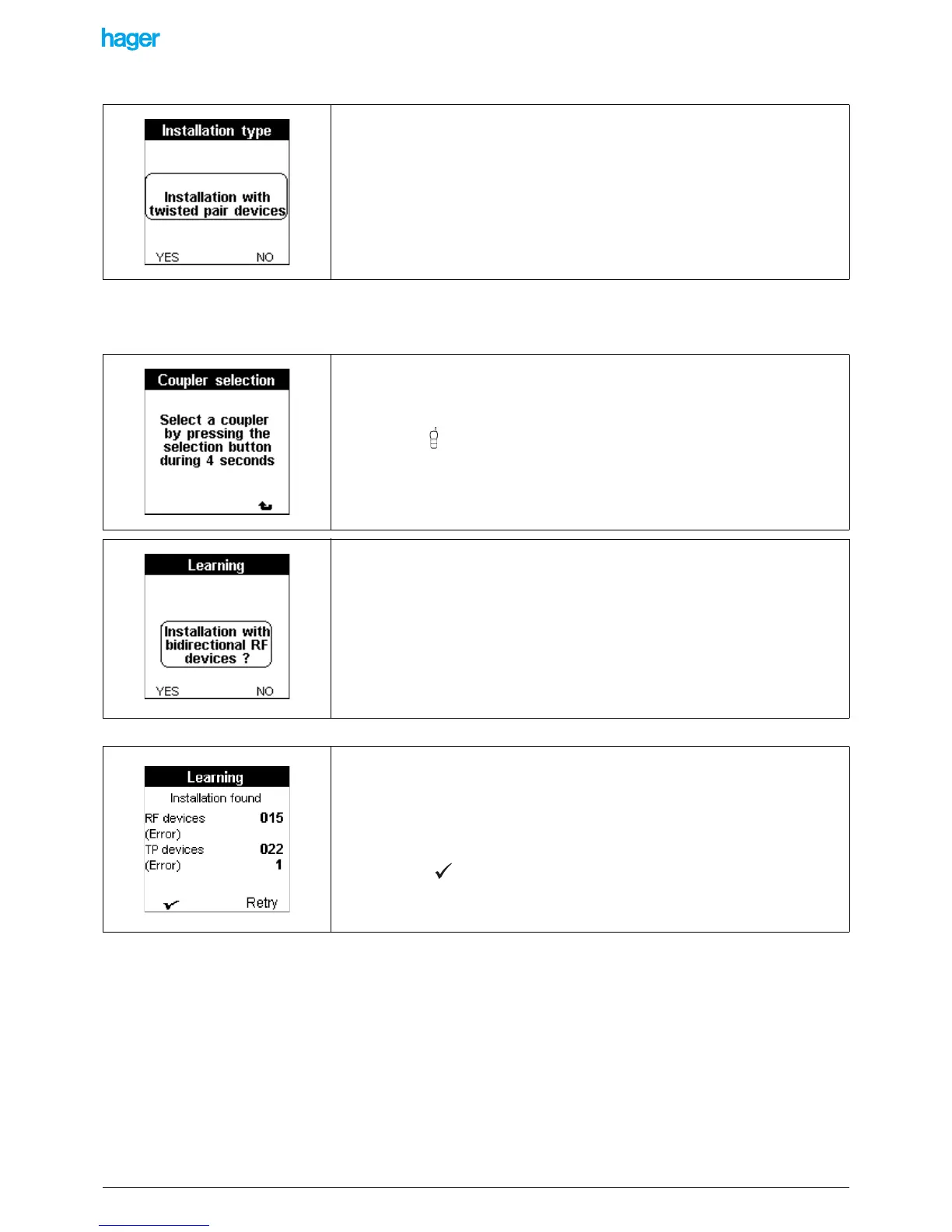 • Press the NO screen key if the installation includes no bidirectional RF products.