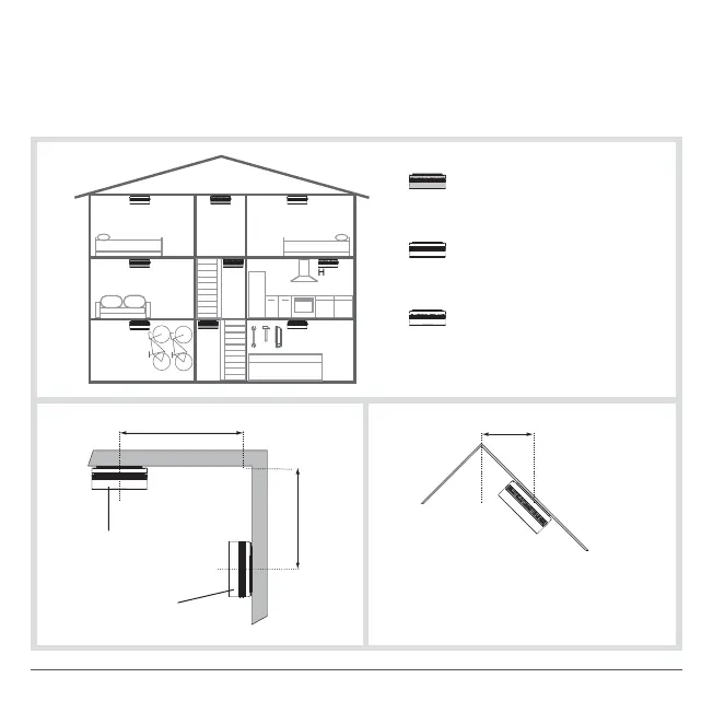 • op het hoogste punt van schuine plafonds (A-vorm), waar zich lucht kan ophopen