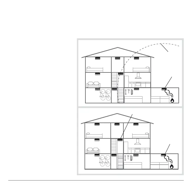If the radio range between all the detectors is insufficient, one of the detectors can be